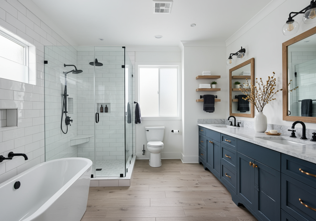 With plumbing integral to the function of a bathroom, any renovations in this space have the potential to be complex. Fortunately, there are many straightforward changes you can complete to make your bathrooms feel brand new. For instance, replacing wallpaper and tile can considerably transform the space's ambiance. Installing a new mirror or light fixtures can add a modern touch. None of these changes will hinder the use of the bathroom for long or take too much time and effort. Bathrooms usually don’t have an excess of design elements, so simple changes to what’s already there can go a long way.